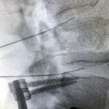 Provocative lumbar discography is the gold standard diagnostic test to precisely confirm or exclude the intervertebral disc as a source of chronic low back pain. Using fluoroscopic (x-ray) guidance, needles are placed within two or more discs and pressurized using contrast dye. Based on patient response (i.e. whether the patient’s typical low back pain is reproduced or not) and imaging findings such as fissures (tears) within the disc(s), a diagnosis of painful lumbar degenerative disc disease (lumbar discogenic pain) can be confirmed or ruled out as a source of chronic low back pain.